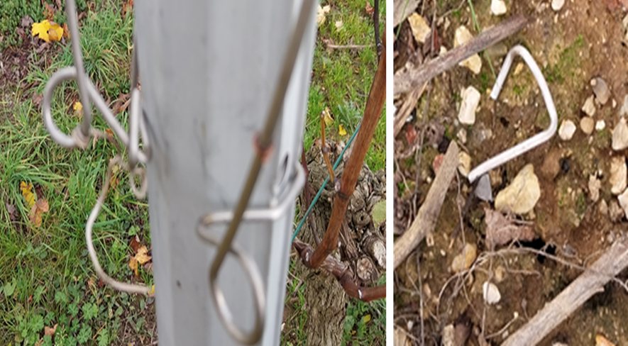 Un écarteur mal fixé sur le piquet de rang pourra être accroché par les disques de la machine entrainant des dégâts sur le palissage et le matériel sans compter le temps passé pour réparer.
